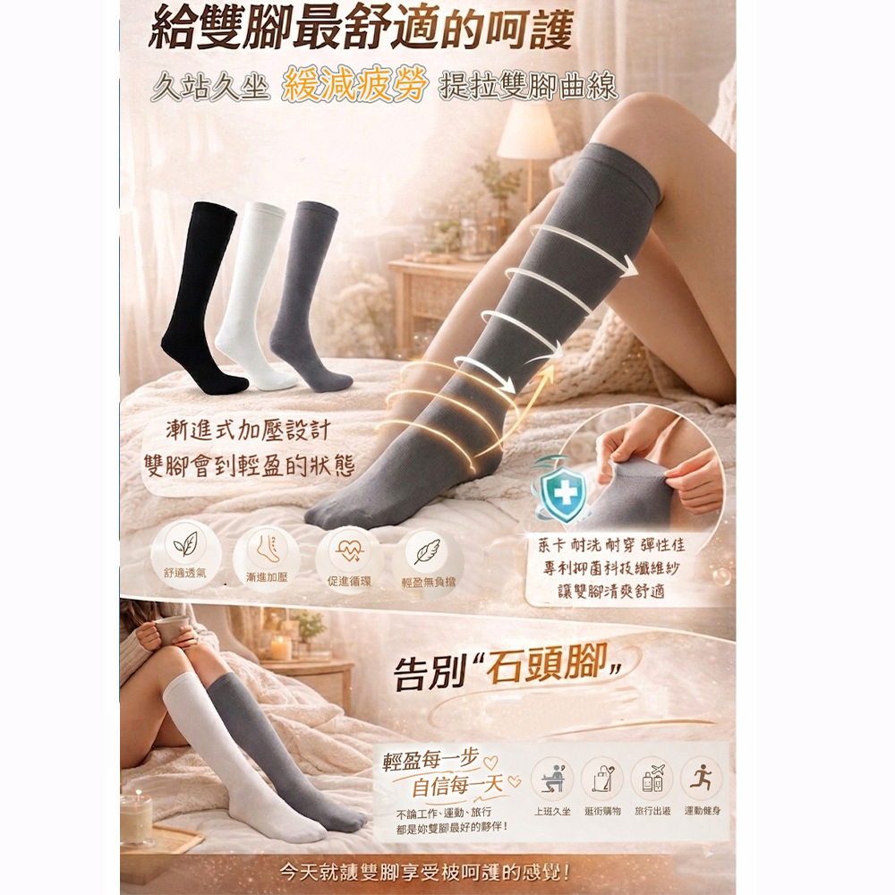 減少肌肉震動 運動/久站/旅行 告別石頭腳 壓力運動襪